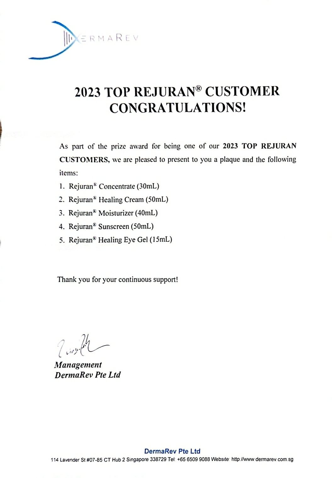 Congratulation to ClearSK Winning The Rejuran Top Clinic & Top User Awards 2021 in Singapore!